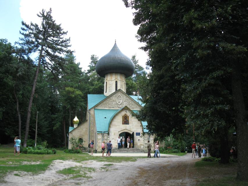 Пригород Харькова. Спасо-Преображенская церковь построенная в 1913 году известным архитектором А.В. Щусевым в лесу.