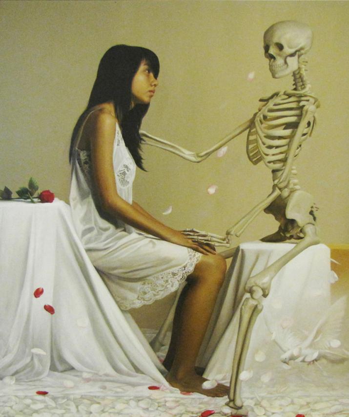 А вторая – жесткая. На стуле сидит девушка, а перед ней скелет. И подпись: «This is future». Это будущее.