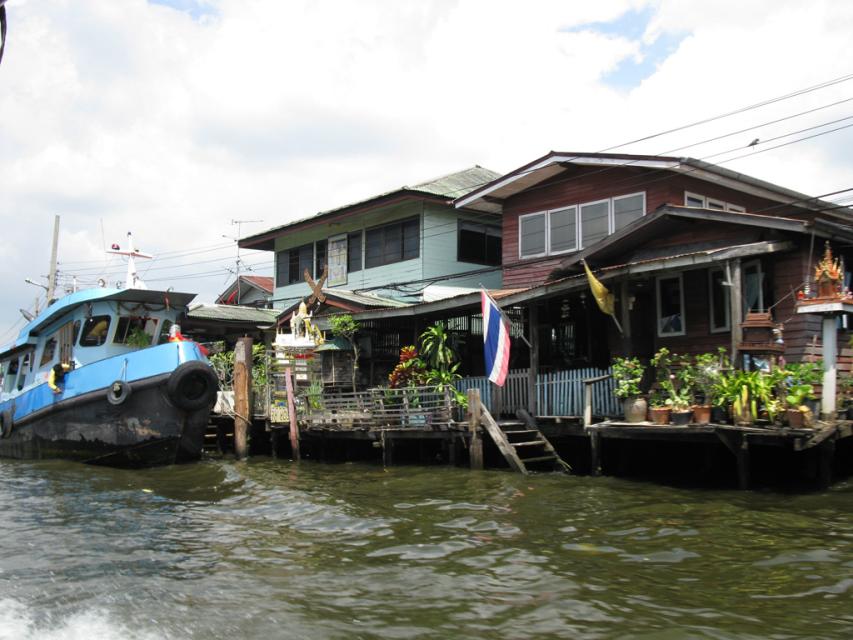 Бангкок пронизан клонгами (каналами) Чао Прайя, по обе стороны которых тянутся жилые кварталы, построенные на сваях.