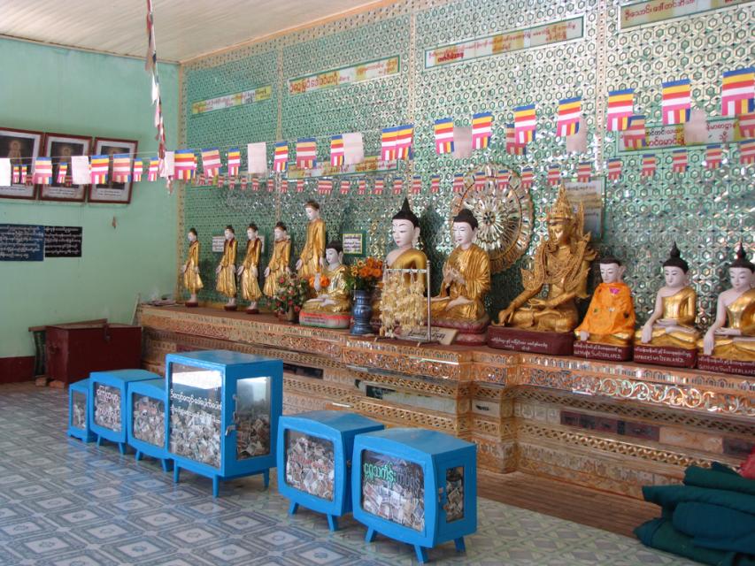 Умин Тхозе пагода. Ящики для подаяния (стоят в каждом храме и монастыре).