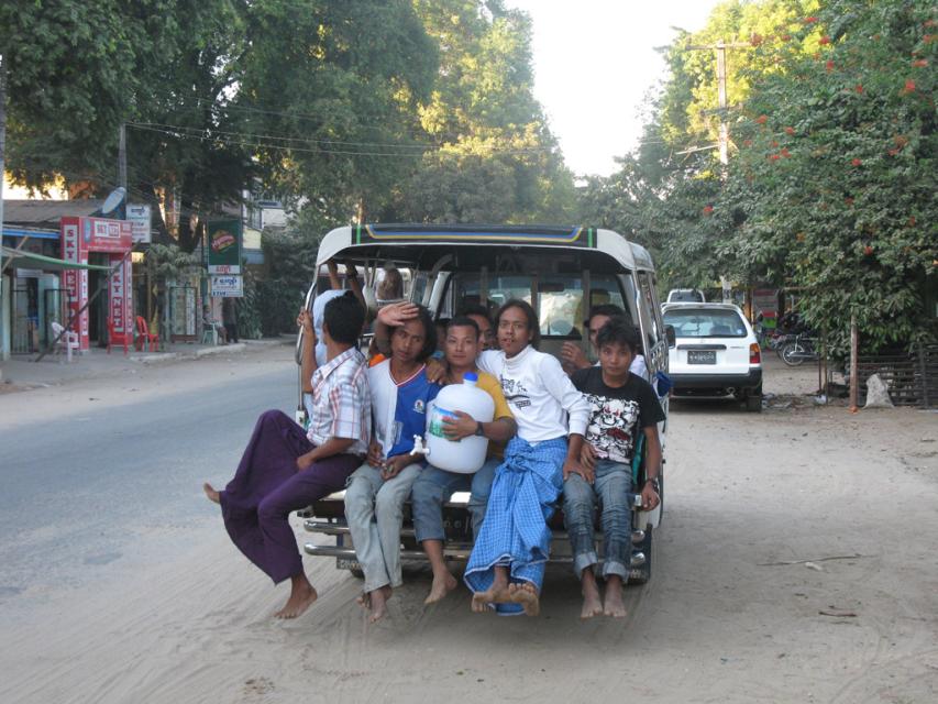 Хозяйка отеля предлагала ночной автобус до озера Инле, но ребята решили ехать днем и все осматривать. Потом пожалели: ужасный автобус без окон и дверей. Каждый час останавливался и брал пассажиров с мешками и сумками. Жара и вонь с 9 утра до 6 вечера.