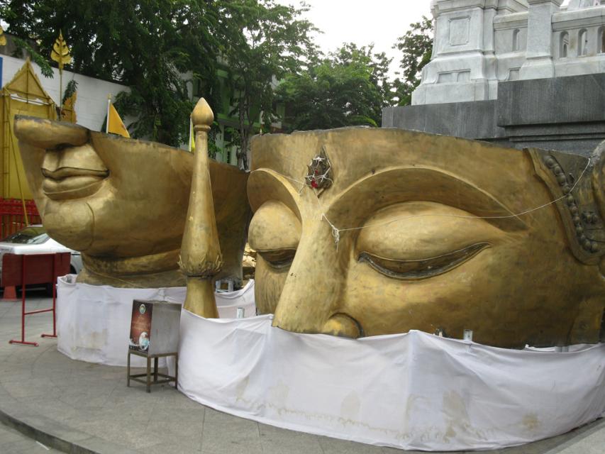Храм Траймит. Голова святого Будды изредка реставрируется и покрывается бронзовой краской.