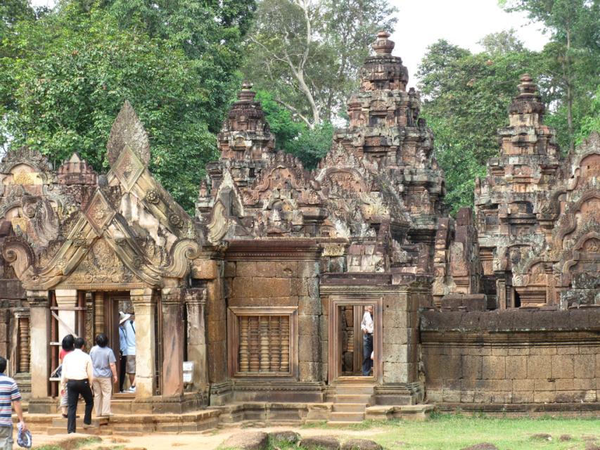 Храм Бантей Срей – уникальный храм кхмеров, построенный из розового песчаника и богато украшенный утонченной резьбой по камню.