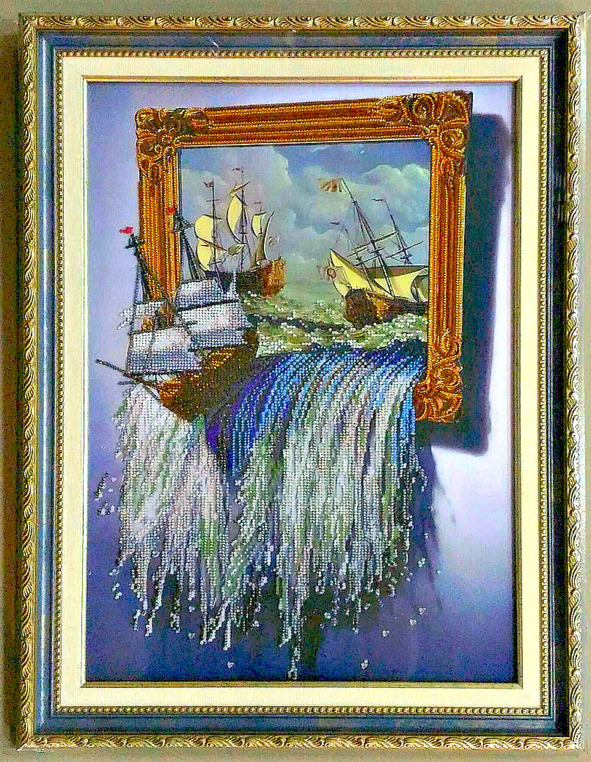 Как-то просматривая ленту новостей одной из соцсетей в интернете, я увидела очень необычную картину. Корабль буквально выплывал из рамки с морским пейзажем. Мой мозг никак не мог справиться с увиденным. «Что это?» – спросила я себя и стала внимательно рассматривать этот шедевр.