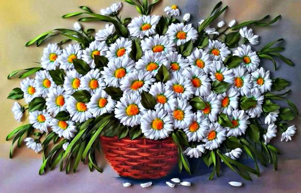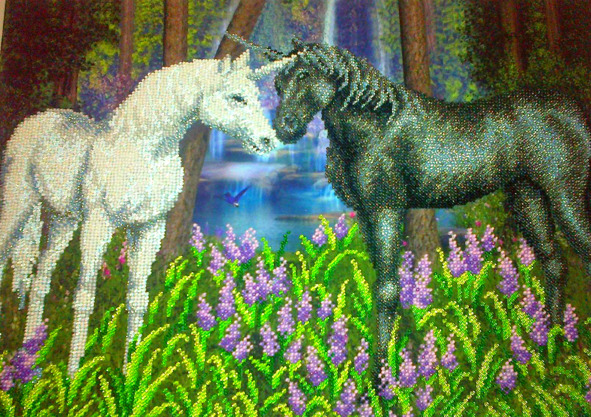 Глядя на профессионально выполненные работы Мерцаловой Ларисы, невозможно подумать, что она занялась рукоделием шесть лет тому назад. Лариса самостоятельно изучила методику работы с лентами и бисером в интернете. И теперь у неё около ста работ, которые разлетелись не только по нашей стране, но и в зарубежные страны. Кстати, с одной из картин, на которой изображена пара единорогов, произошла интересная история. Кто-то из знакомых мастерицы прочитал, что единороги – к замужеству. Подруги Ларисы решили проверить это на собственном опыте и заказали у нее картины с единорогами. Через полгода они вышли замуж.