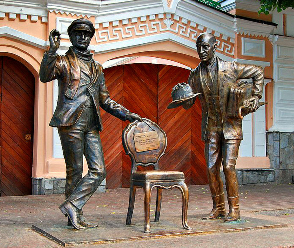 На одной из улиц Чебоксар установлен памятник известным литературным героям, которые очень напоминают своих киноперсонажей. Это памятник Кисе Воробьянинову и Остапу Бендеру. Великий комбинатор эффектно опёрся на стул, а рядом в неуверенной позе замер предводитель дворянства.