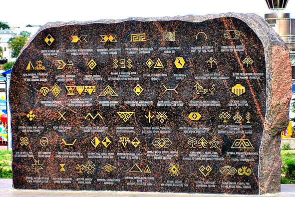 А на Красной площади в Чебоксарах установлена памятная гранитная плита с изображением пятидесяти трёх древних символов чувашских узоров. В древнюю народную мудрость Чувашии вошли символы мира, согласия, верности, единства, Родины, семьи, домашнего очага, уюта, взаимопонимания, уважения, созерцания, прозрения, самосознания, сплочения, стремления, движения (эволюции), знания, справедливости, духовного взлёта, жизненной мудрости, примирения, материнства, трудолюбия и другие.