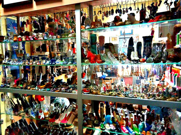Кроме собственноручно сшитых экземпляров, у Радия Ивановича есть витрина с купленной обувкой из хрусталя, керамики, пластмассы, металла и резины. Она также привлекает внимание посетителей, потому что красочно оформлена и насчитывает более тысячи экземпляров.