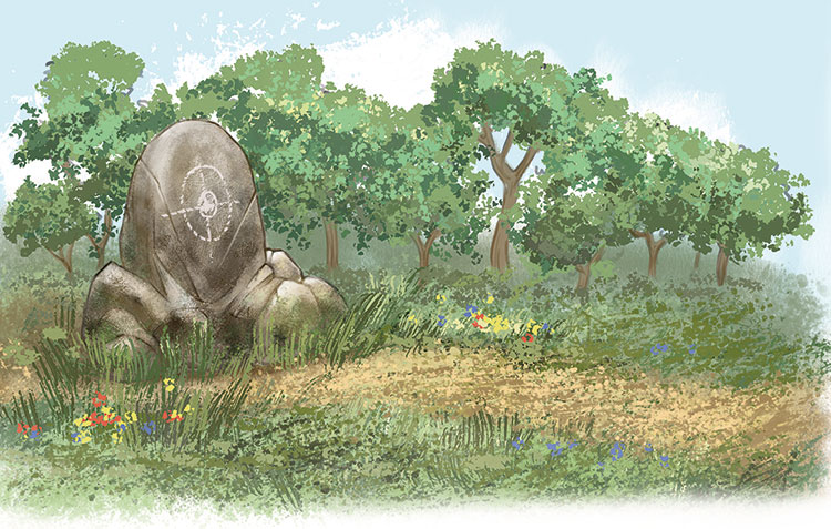 И опять они шли, шли и наконец пришли. Перед ними стоял крупный серый гранитный камень. Ребята подошли поближе.