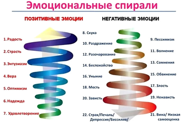Любой человек, создавая семью, настроен получать позитивные эмоции. Какими эмоциями вы наполняете жизнь своего мужа? Посмотрите на столбик позитивных эмоций, эти семь первых эмоций позволят вам создать богатство в семье. И эта работа – не из легких.