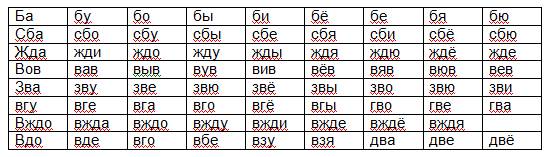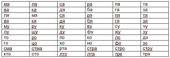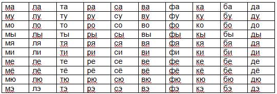 Работать со слоговыми таблицами предстоит по плану: