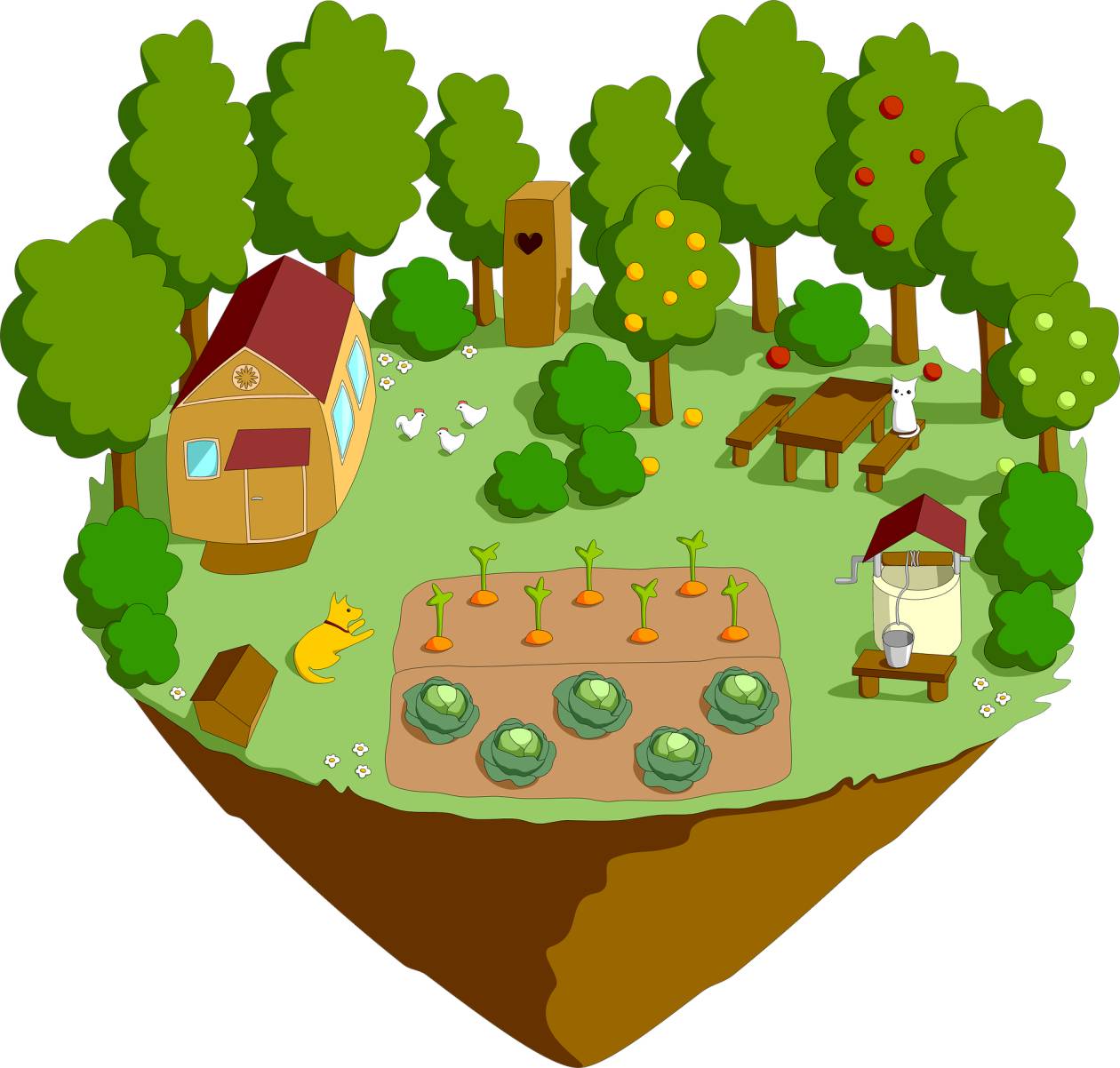 Рисунок 11 Иллюстрация садового участка земли с деревьями грядками постройками