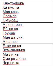 Раздели слова на слоги.