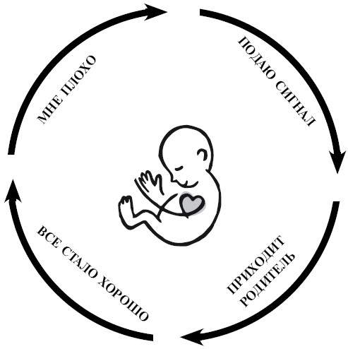 Раз за разом повторяясь, эта последовательность действий формирует круг заботы: у ребенка возникает дискомфорт – он подает сигнал – приходит родитель, что-то делает – наступает комфорт, и так до следующей проблемы.