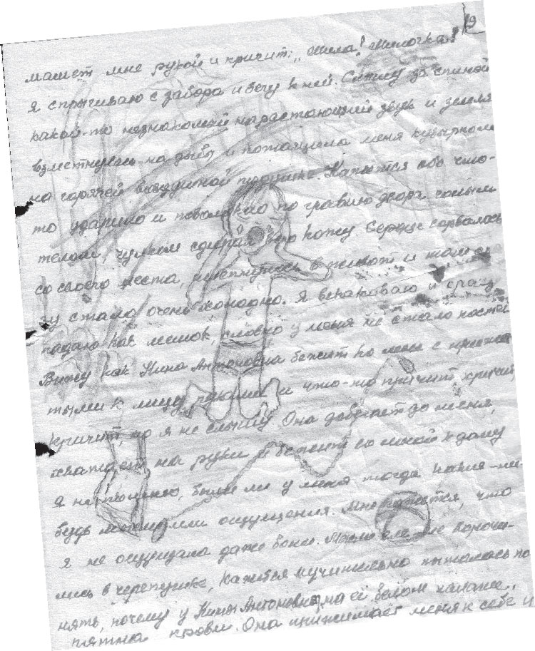 И гибель детского эшелона на станции Лычково, и немецкий танковый прорыв в Демянске, где было много эвакуированных из Ленинграда детей, – все шло под грифом «бои местного значения». Они в историю не входят. К тому же надо учесть, что Демянск июля 1941 г. и «Демянский котел» 1942–1943 гг. – разные по срокам и значимости события. Но о детской трагедии нигде, никогда, ничего не сообщалось, кроме «сарафанного радио». Узнав о трагедии, родители бросились в те места на поиски своих детей. А город молчал. Молчит практически и по сей день. А мы, выжившие в той бойне, помнили и помним, но долгие годы молчали, как молчали и о блокаде, и о ее последствиях. И как-то неожиданно в 1988–1989 гг. вдруг активно заговорили о блокаде и блокадниках. И я вспомнила и извлекла из небытия свои детские «Мемуары». Моя сохранившаяся пухлая тетрадь заговорила недетской болью. Для меня самой через сорок лет молчания рукопись стала новым потрясением. Нет, я и без нее ничего не забыла, но приглушилась боль, оставленная войной. Теперь все это молча кричало со страниц школьной тетради. Стихи, рисунки, рассказы – все из той прошедшей жизни ребенка периода войны. Стихи – это не стихи, как таковые, это зарифмованные подлинные события, размышления и восприятие тех событий. Очевидно, тогда, в мои 16 лет, когда это было написано, мне казалось, что зарифмованные факты более точно, образно и емко рассказывали о происходивших и пережитых событиях. В основном на рифму легли самые кульминационные события и моменты. Это те же, но зарифмованные рассказы. Мои «Мемуары» – «маленькие трагедии» маленького человека в большой войне больших людей. Это весь путь войны ребенка с самых первых ее дней до последних. И это всего лишь одна история маленького человека. А если бы записанных детских историй было больше, тогда и лицо войны можно было бы увидеть и осознать в полном объеме, а не в усеченном, как нам ее представляют. Война – это не только «человек с ружьем». Это весь народ, попавший под ее молох, в том числе и дети, самая незащищенная и беспомощная его категория.