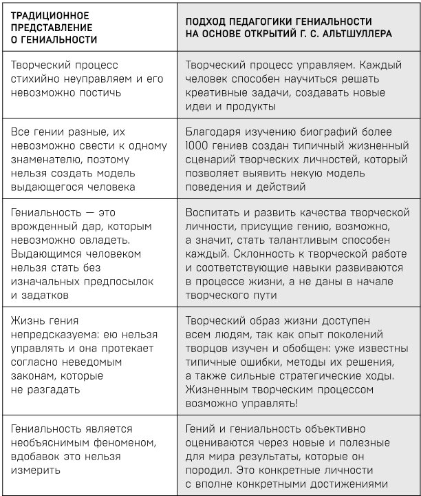 Таблица 1. Гениальность: традиционный взгляд и новаторский подход Альтшуллера