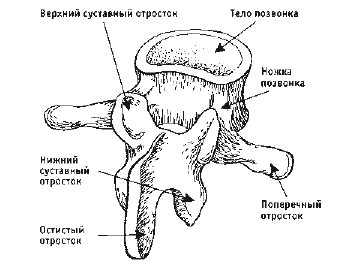 Тело позвонка (рис. 2) напоминает по своему строению уплощенный цилиндр и образовано из достаточно мягкого (по сравнению с другими частями позвонка) губчатого вещества. Именно тела позвонков вместе с межпозвонковыми дисками составляют позвоночный столб, несущий основную осевую нагрузку. Тело каждого позвонка имеет свои особенности. Чем ниже находится позвонок, тем крупнее его тело. Это связано с тем, что осевая нагрузка на позвоночный столб увеличивается сверху вниз.
