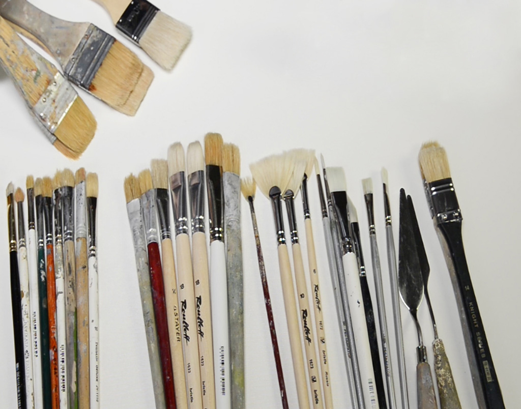 Во время работы над одним произведением нужны разные кисти. Их использование диктуется разностью задач. После сеанса живописи кисть промывается уайт-спиритом в кистемойке. Далее она несколько раз моется в теплой воде с хозяйственным мылом до белой пены. При этом важно промылить кисть на ладони, потирая ее в разных направлениях так, чтобы вычистить как можно больше краски из ворса. После этого нужно позаботиться о сохранности формы кисти: плотно завернуть ее в небольшой прямоугольный фрагмент бумаги, начиная с угла и продолжая по диагонали, а чуть не доходя до конца листа, на уровне окончания ворса, нужно сделать залом, оставшийся уголок, смочив водой, следует приклеить к остальной части, закрепляя конструкцию. В таком чехле кисть должна сохнуть в вертикальном положении.