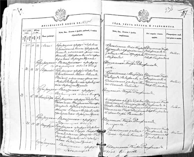 Метрическая книга с записью о рождении А. Кучина (Из фонда ГААО)