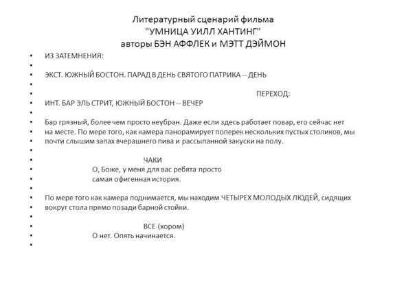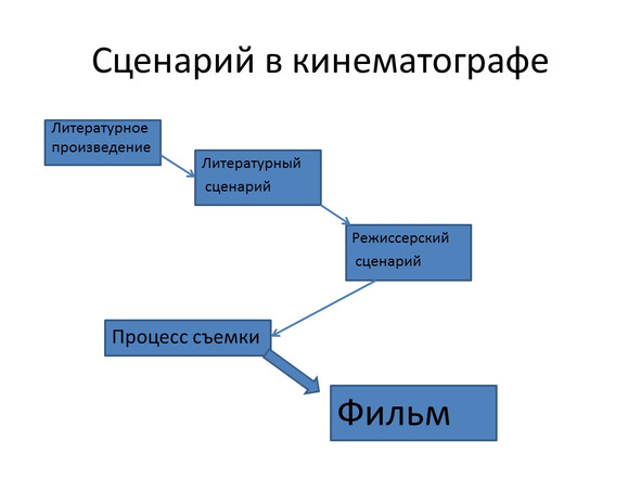Теперь – в драме тоже есть автор, тоже хочет передать смысл, ему для этого служит сюжет. Выбирается одна линия, одна история, внутренний мир и сознание героя даются через действие, которое зритель может видеть. И самое важное, что противостоит последнему пункту литературного произведения, драма или инсценировка предполагает создание коллективного зрелища. Люди смотрят кино коллективно, и это, кстати, большая разница с тем, чтобы смотреть, сидя у себя на кухне. Потому что когда зал реагирует, ты реагируешь вместе с ним, возникает другой набор эмоций, чем если ты сидишь у себя, ноги в тазике паришь и на плеере это всё смотришь. (Я, кстати, люблю ноги в тазике). Но предназначалось это всё совершенно для других вещей, когда кино начиналось. Потому что кино, так же, как и театр – это такое базарное зрелище для всех. И это важно.