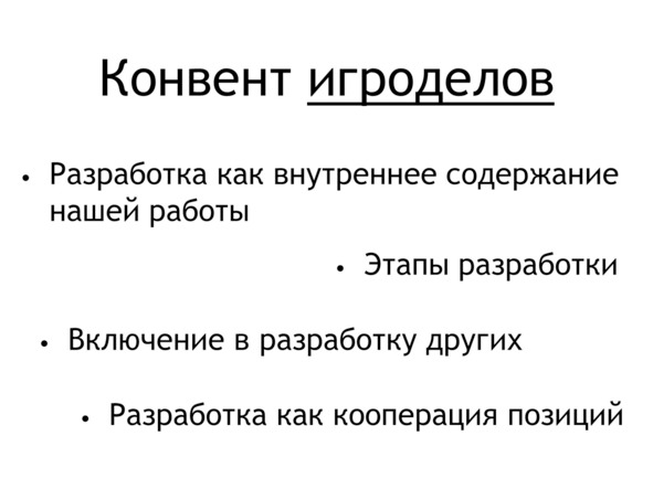 И вот этим полученным в результате нашего небольшого опроса срезом современного положения игр, веером самых разных представлений, образов и прогнозов мы хотим поделиться с вами, уважаемый читатель. На следующих страницах вас ждут не только интервью – ещё и презентации докладов, и заметки, написанные после обсуждений наиболее вдумчивыми и сознательными участниками, и фрагмент стенограммы дискуссии, которая нам показалась наиболее важной на этом конвенте. Мы очень надеемся, что среди представленных материалов вы найдете близкие вам подходы, интересные игры и людей, с которыми вам захочется вместе поработать.