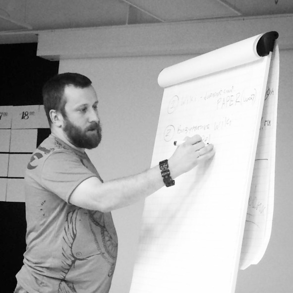 Меня зовут Алексей Кулаков, последние лет 15 я занимался прикладными играми. Честно скажу, что я ими никогда не занимался как бизнесом, потому что у меня есть другой бизнес – айтишный. Мне просто было интересно разрабатывать всякие интерактивные околоролевые форматы для прикладных нужд. Сейчас мне это немного поднадоело, потому что есть проблематика такая, что короткие форматы – неглубокие, и поэтому в них ничего сильного и глубокого не происходит. Или, может быть, я этого не вижу или не знаю. Мне сейчас снова стало интересно экспериментировать с художественной формой, то есть, для меня маятник качнулся в обратную сторону. Некоторое время мне казалось, что прогресс происходит в рамках прикладных игр, а сейчас я думаю наоборот. Уже несколько лет я не делал художественных игр вне конвентов (на конвентах я всякие малые формы периодически делаю). Сейчас вот я делаю «Американских богов», потому что мне интересно экспериментировать с формой. Ну, и ещё я делаю РМЛ (Ролевой методический лагерь). Он как формат интересный, это прикольная гуманитарная технология, но мне нужно допонять, что это такое, и чем это отличается от просто гейм-джема или просто хакатона.