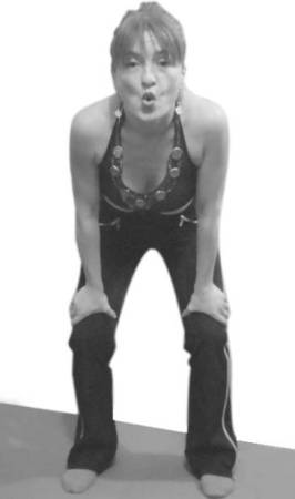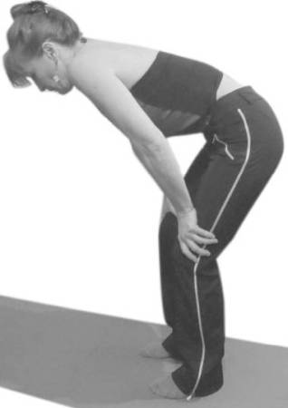 Начальная поза: ноги – на ширине плеч (30–35 см), наклоните верхнюю часть туловища вперед, чуть согните ноги и руками упритесь в колени так, чтобы вам было удобно. Поза должна напоминать передышку после бега. Вспомните, как вы садитесь на низенький стульчик. Центр тяжести перемещается вперед, и вы в поисках опоры невольно упираетесь руками в колени.