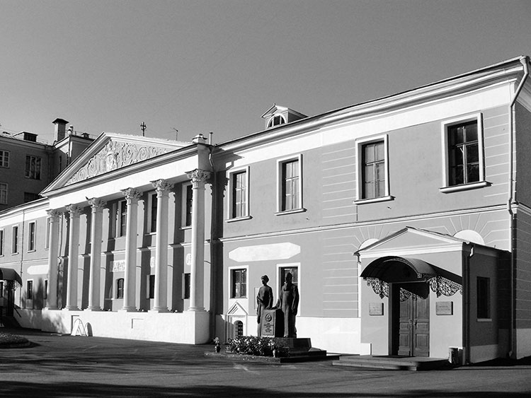 Главный дом усадьбы Лопухиных, где до мая 2017 г. располагался Общественный музей имени Н.К.Рериха МЦР и мемориальный кабинет Л.В.Шапошниковой. Москва, М. Знаменский пер., 3/5