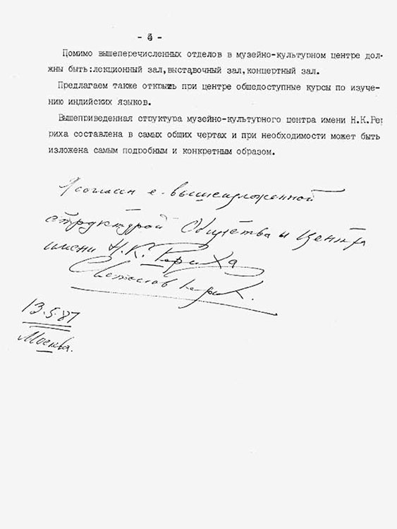 ・・Предварительные соображения по структуре предлагаемого музейно-культурного центра имени Н.К.Рериха・・. Машинопись. Л. 5