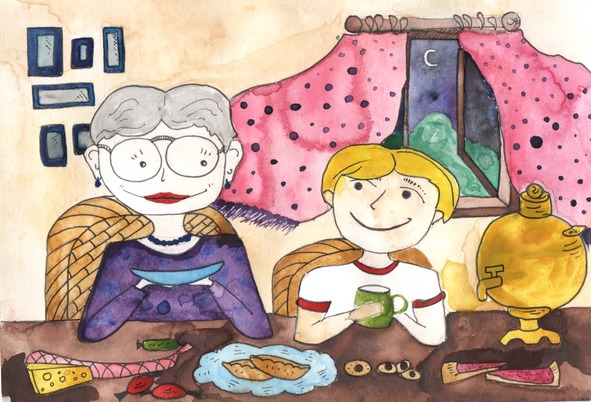 Посиделки так нередко,Чай попить идем к соседке.На террасе стол накрыт,Самовар блестит, пыхтит.Блюдца, чашечки, салфетки,В хрупкой вазочке конфетки.Горка в блюде пирогов,Каждый скушать я готов.Разговор ведут соседи:«Как здоровье, внуки, дети»?Чай степенно пьют из блюдца,Как же здесь не улыбнуться,Проще кружку взять большую,И соломинку простую,Так не будет горячо,Можно долго пить еще.А потом устав от чая,Под столом ногой качая,Нежно к бабушке прижался.И уснул. Не удержался.