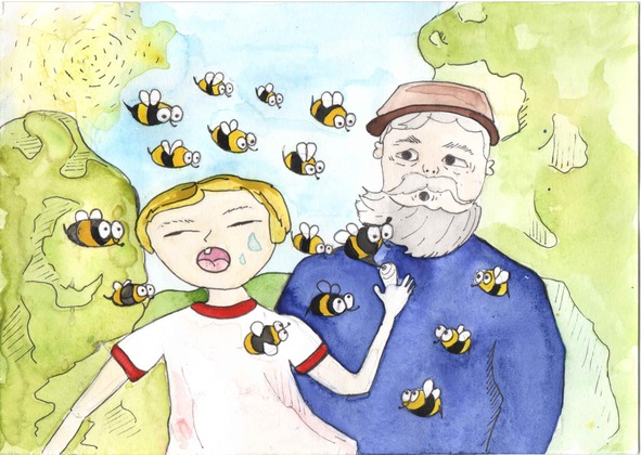 У меня сегодня горе.Нет печальней этой доли,Как больной укус пчелы,Даже слезы горячи.Делает примочку мама,Чтобы не болела рана.Папа тоже подбодряет,«Ты держись, не то бывает».«Знаешь, мы, мужчины,Не рыдаем без причины».Я сквозь слезы прошептал:«Может я и не рыдал,Если б эти пчелы злые,Про меня совсем забыли,А не то я захочу,То же с ними полечу.Но кусать я их не буду,Я обиду позабуду,И не буду им мешать,В соты меда набирать».«Уважаю – дед сказал,Ну а внук то взрослым стал».