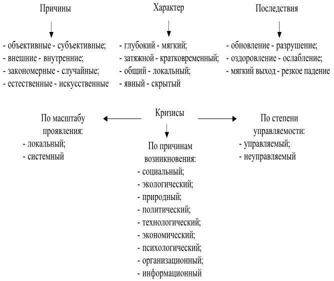 1. Причины возникновения кризисов в социально-экономическом развитии. Разновидности кризисов