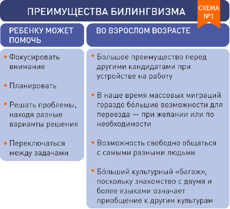 Другими словами, билингвизм дает человеку целый ряд преимуществ.