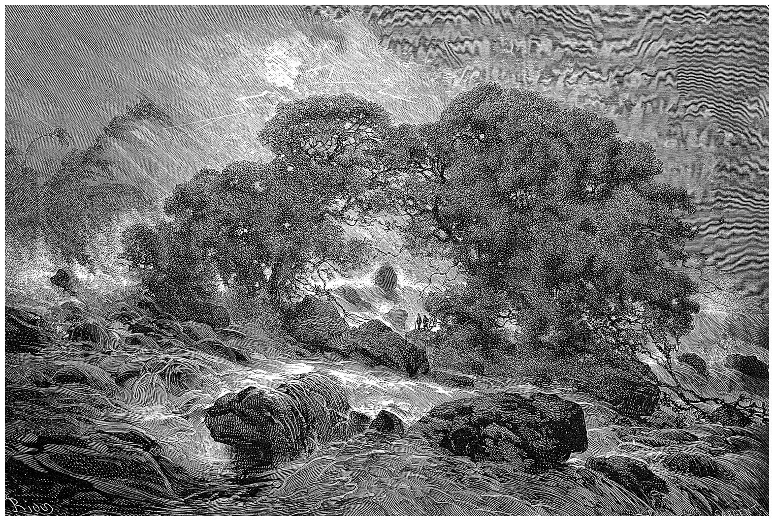 Смолкли обезумевшие от страха лесные животные и птицы. Был слышен лишь оглушительный рев урагана, достигавший временами невероятной мощи.