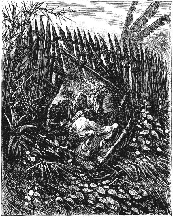 Конь очертя голову бросился в крааль. Частокол, который в этом месте был слабее, подался под копытами коня, как если бы в него попала бомба, и теперь бедное животное, вконец замученное колючками, неслось куда глаза глядят.