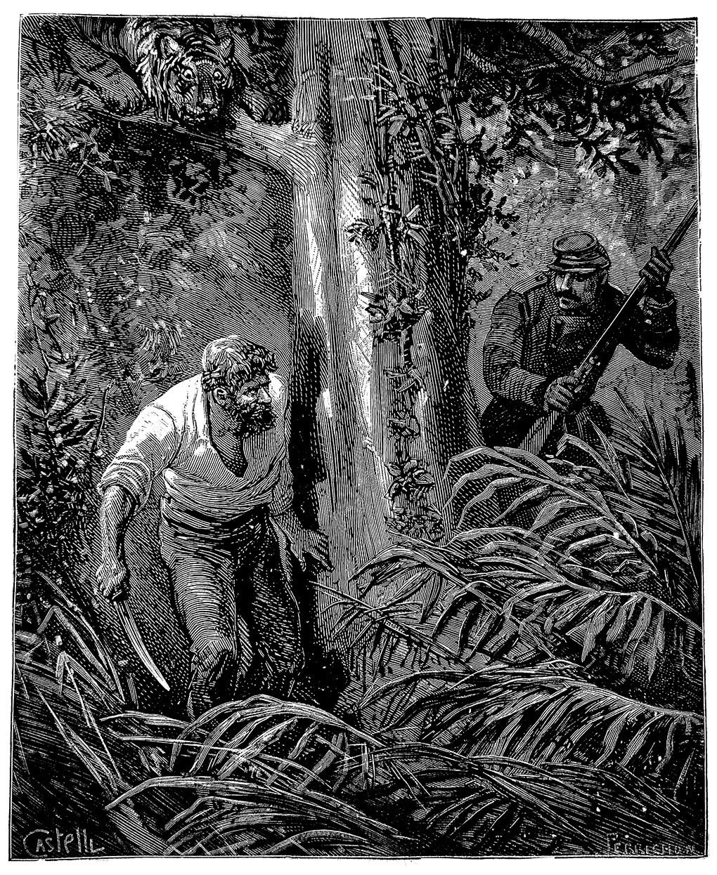 Великолепная, но бесплодная природа. – Голод. – Одиннадцать скелетов. – Каторжники-людоеды. – Что такое белый тигр. – Капуста весом в тридцать килограммов. – Первый краснокожий. – Еще один враг. – Неблагодарность и предательство. – Продан за стаканчик водки. – По-прежнему один. – Страшное падение. – Умирающий надсмотрщик наедине с обезглавленным ягуаром. – Лихорадка. – Почему концерт обезьян-ревунов можно назвать настоящим бенефисом. – Опять этот индеец. – Охота на человека продолжается. – Логово белого тигра.