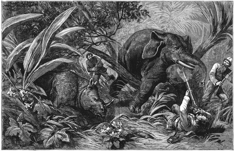 Слова «слон», «носорог», «бегемот» пробудили в наших трех французах охотничью страсть. Свалить такое огромное толстокожее, совершить такой ловкий и смелый поступок, осуществить эту мечту всякого цивилизованного Нимрода и вместе с тем сделать доброе дело – вот вам двойной соблазн, и они даже не подумали ему сопротивляться.