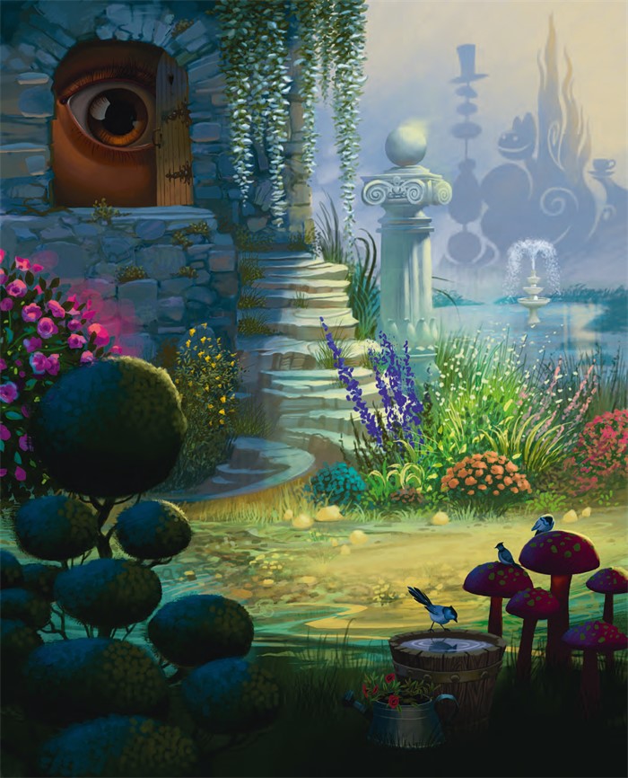 Она открыла дверцу и увидела за ней нору, совсем узкую, не шире крысиной. Алиса встала на колени и заглянула в неё – в глубине виднелся сад удивительной красоты. Ах, как ей захотелось выбраться из тёмного зала и побродить между яркими цветочными клумбами и прохладными фонтанами! Но она не могла просунуть в нору даже голову.