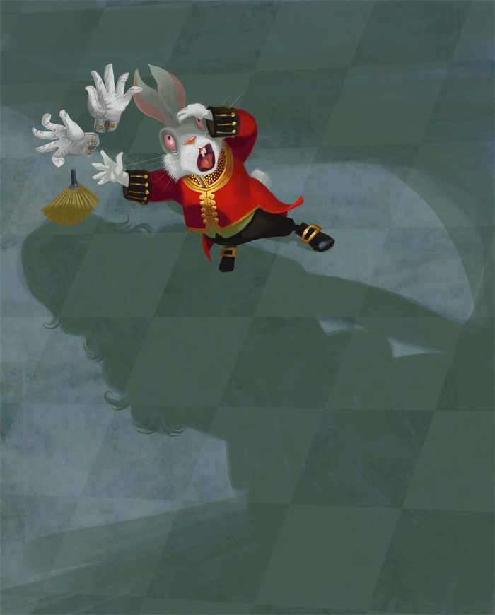 Кролик подпрыгнул, уронил перчатки и веер, метнулся прочь и тут же исчез в темноте.