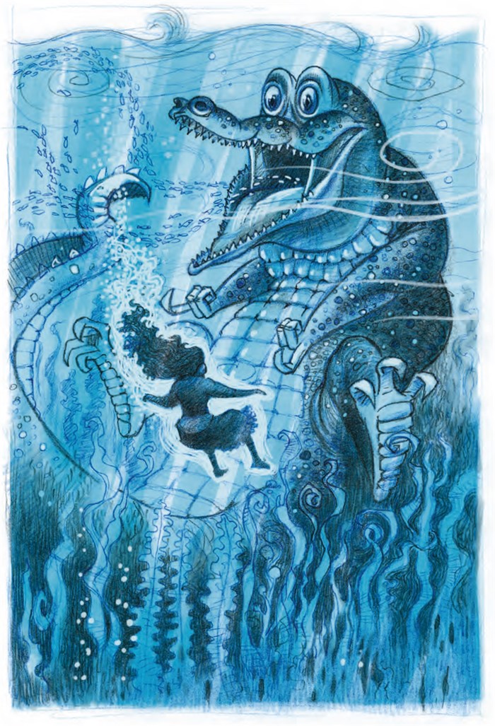 Тут она поскользнулась и – бух! – шлёпнулась в воду. Вода была солёная на вкус и доходила ей до подбородка. Сначала она подумала, что каким-то образом упала в море.