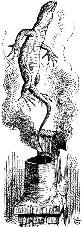 She waited for some time without hearing anything more: at last came a rumbling of little cartwheels, and the sound of a good many voices all talking together; she made out the words: ‘Where’s the other ladder? – Why, I hadn’t to bring but one; Bill’s got the other – Bill! fetch it here, lad! – Here, put ’em up at this corner – No, tie ‘em together first – they don’t reach half high enough yet – Oh! they’ll do well enough; don’t be particular – Here, Bill! catch hold of this rope – Will the roof bear? – Mind that loose slate – Oh, it’s coming down! Heads below!’ (a loud crash) – ‘Now, who did that? – It was Bill, I fancy – Who’s to go down the chimney? – Nay, I shan’t!Youdo it! – That I won’t, then! – Bill’s to go down – Here, Bill! the master says you’re to go down the chimney!’