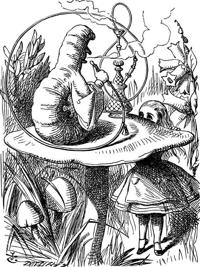 Alice thought she might as well wait, as she had nothing else to do, and perhaps after all it might tell her something worth hearing. For some minutes it puffed away without speaking, but at last it unfolded its arms, took the hookah out of its mouth again, and said, ‘So you think you’re changed, do you?’