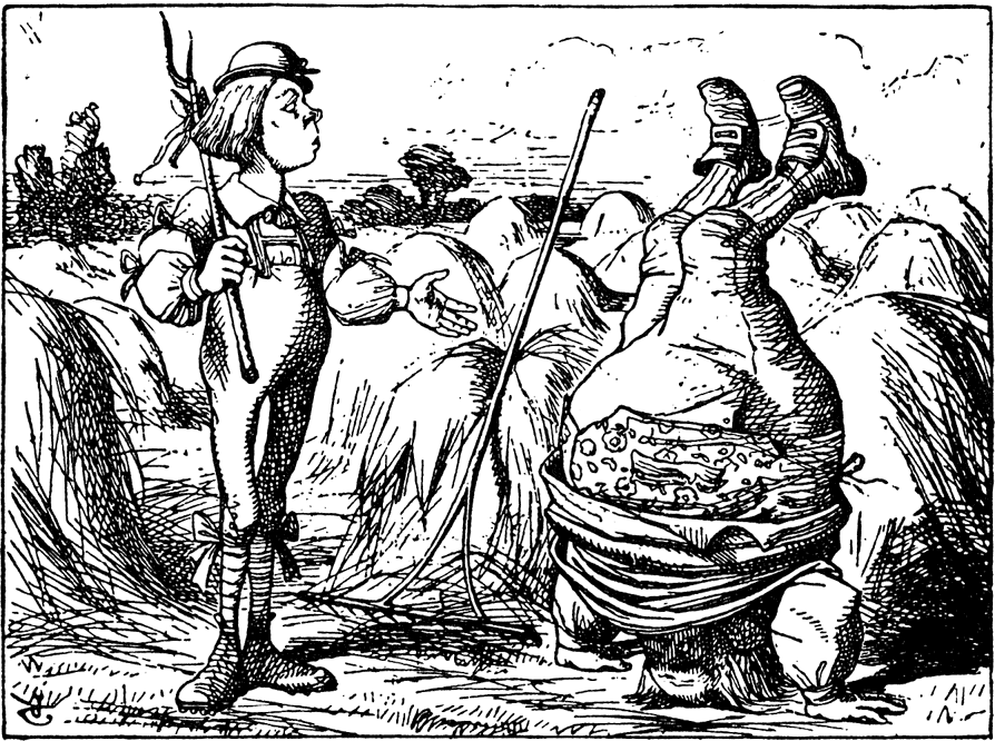 ‘It matters a good deal tome,’ said Alice hastily; ‘but I’m not looking for eggs, as it happens; and if I was, I shouldn’t want yours: I don’t like them raw.’