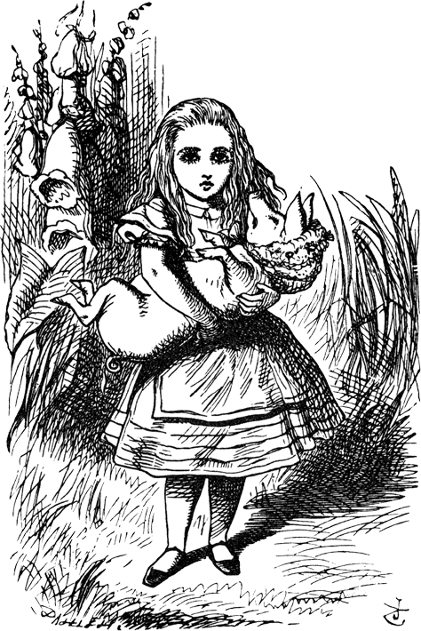 * * * *‘Come, my head’s free at last!’ said Alice in a tone of delight, which changed into alarm in another moment, when she found that her shoulders were nowhere to be found: all she could see, when she looked down, was an immense length of neck, which seemed to rise like a stalk out of a sea of green leaves that lay far below her.