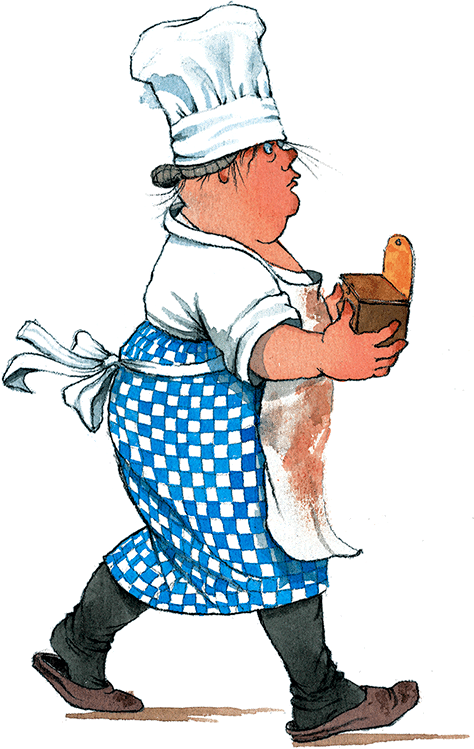 Скрестив руки на груди и нахмурившись так, что глаза превратились в крошечные щёлочки, он устремил взгляд на Кухарку и спросил глухим низким голосом:
