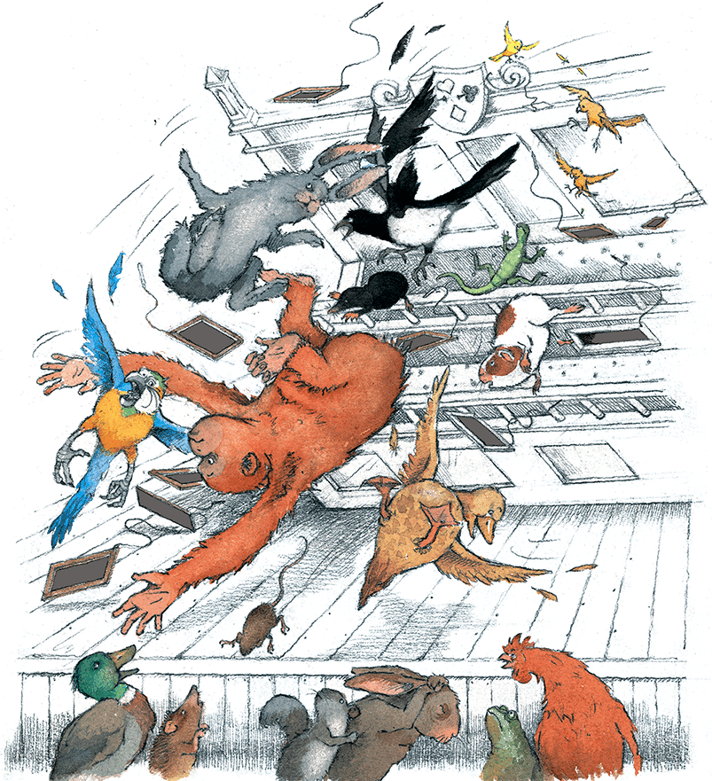 Поднялась страшная суматоха. Несчастного Сурка теребили и тащили в разные стороны, а когда наконец вытолкали из зала и все уселись на свои места, оказалось, что Кухарка исчезла.