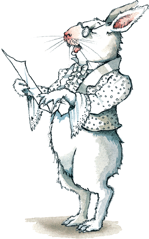 Те уж было начали записывать его слова на своих досках, когда вмешался Белый Кролик.