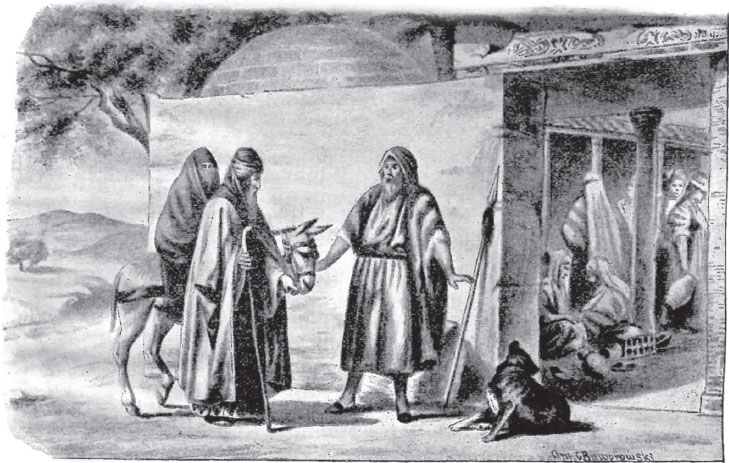 После этих слов назаретянин поспешил вернуться к Марии и бетдагониту. Чуть спустя последний собрал все свое семейство. Его жена смотрелась настоящей матерью семейства, дочери походили на мать, какой она была в юности; и когда вся компания приблизилась к двери, привратник сразу понял, что эти скромные люди будут рады любому приюту.