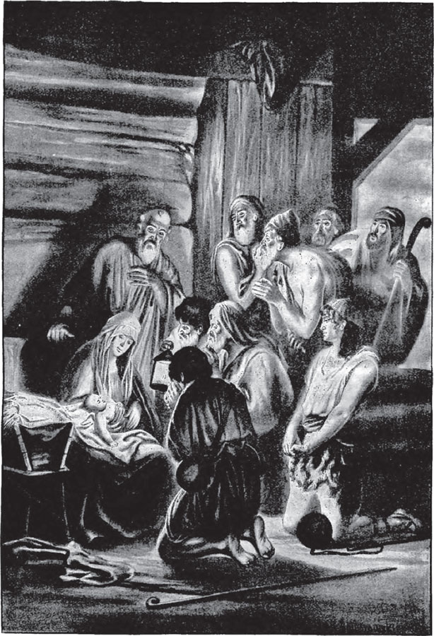 И эти простые люди, больше не сомневаясь, поцеловали край одежды юной матери и с просветленными лицами вышли из пещеры. Во дворе караван-сарая они поведали всем собравшимся вокруг них людям о случившемся; и на всем обратном пути через город к овчарне они распевали слова, произнесенные ангелами: «Слава в вышних Богу, и на земле мир, в человецех благоволение!»