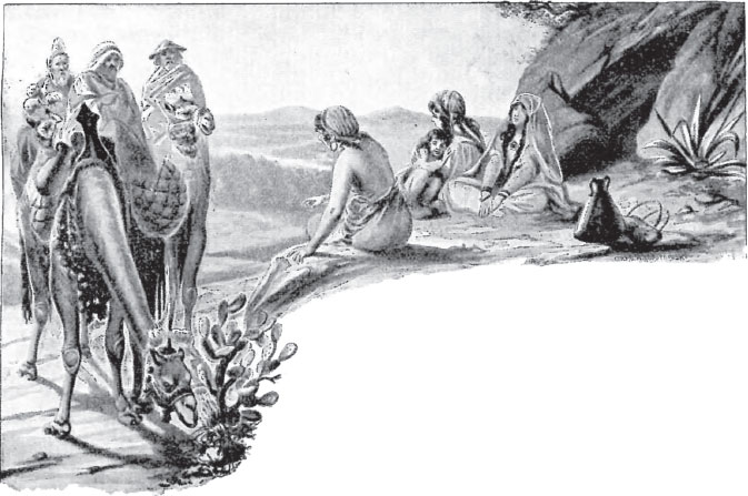 Вся компания двинулась по широкому проходу, вымощенному камнем, и оказалась во внутреннем дворике караван-сарая. Для чужака зрелище представило бы интерес; но уроженцы этих мест обратили внимание только на то, что во дворе не было ни лоскута свободного места. По тропинке, оставшейся свободной от тюков товаров, и потом по такому же проходу, что и от входа, они прошли в загон, примыкавший к дому, и миновали верблюдов, лошадей и ослов, жевавших жвачку и дремавших, сбившись в кучи; за ними присматривали сторожа, люди разных рас. Кто-то дремал, другие провожали пришельцев взглядами. Переполненный двор караван-сарая уходил вниз, и путники медленно спускались по нему, поскольку везущие женщин животные имели свое представление о темпе движения. Наконец они ступили на тропинку, ведущую к серому известняковому обрыву, возвышавшемуся к западу от караван-сарая.